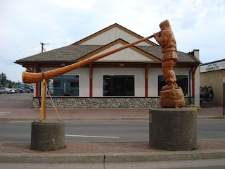 We then went to Hyder, Ak just 3 miles down the road. All the streets are dirt. It looks just like an old west town. A lot of stores have closed down on the main street. Just a few General Stores scattered about, a restaurant in a bus, a couple of souvenir stores, and a bar. Deatra talked to a woman that owns a souvenir store that sells wood from this area to a man in Pilot Mountain that is a well know Dulcimer maker. She had several Dulcimers their and played a little on each. She was an interesting individual.